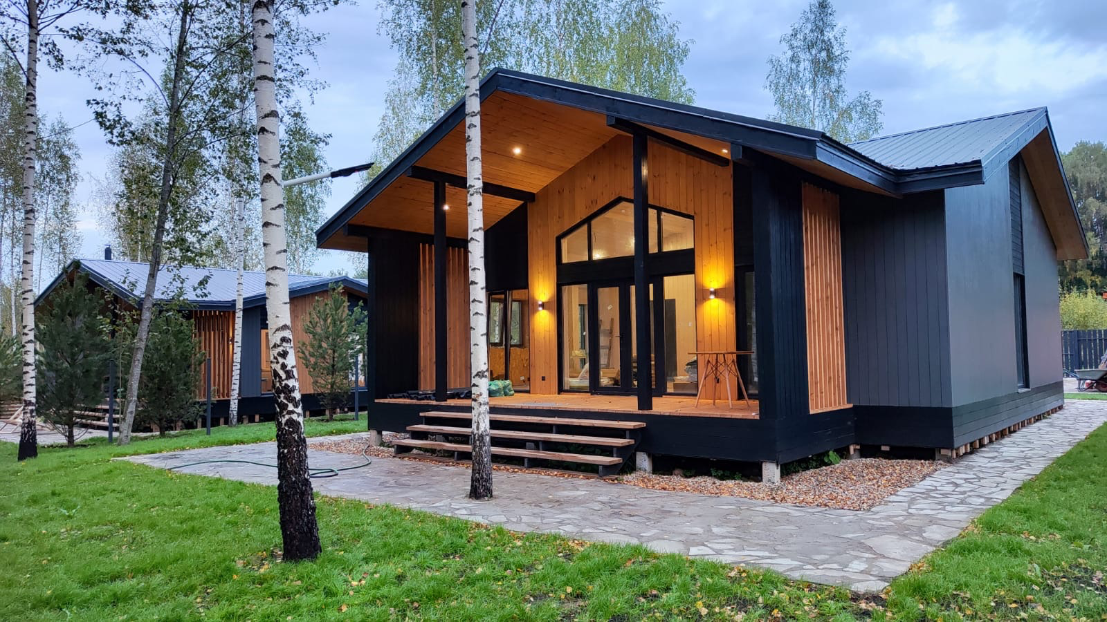 Энергоэффективность. При правильном монтаже «пирога» стены каркасный дом — один из самых тёплых. Это даёт значительную экономию на отоплении.